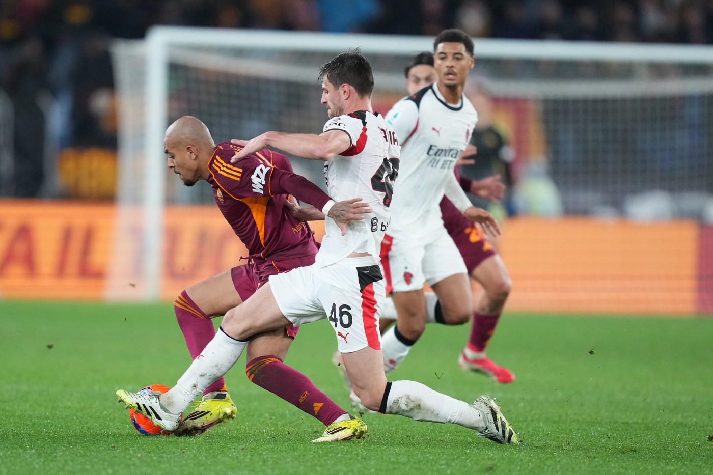 SERIE A ROMA MILAN TABELLINO - Un punto a testa per Milan e Roma nel posticipo di Serie A. Al termine di una sfida dominata quasi interamente dalla compagine romana, i rossoneri - dopo aver concentrato le proprie energie perlopiù per cercare di annullare l'incessante pressing dei romani - riescono a prendersi il vantaggio con il colpo di testa di De Winter su sviluppo di un corner. I padroni di casa riprendono così a spingere fino a guadagnarsi il definitivo pareggio grazie al rigore di Pellegrini.
